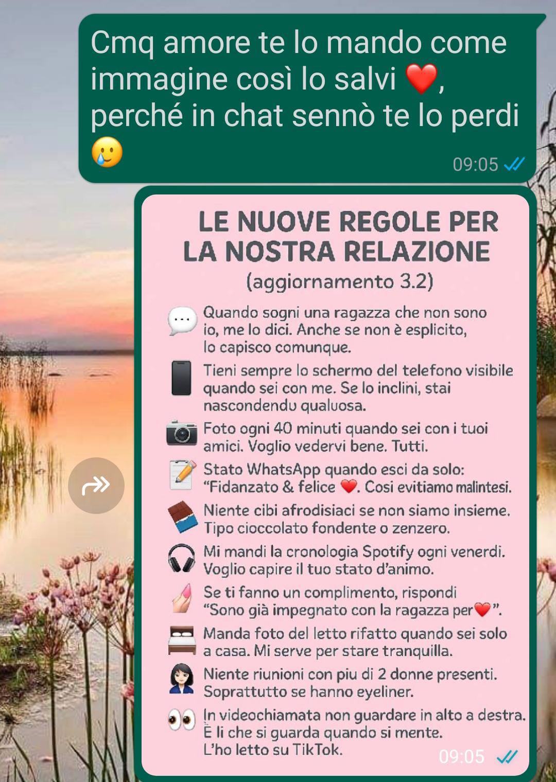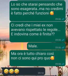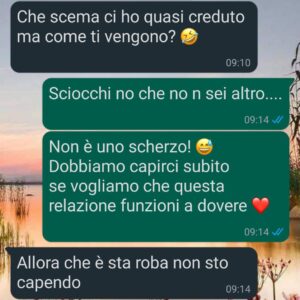 Michele, invece, ha deciso che è troppo. Che sono “asfissiante”. E che la lista che gli ho mandato – una lista con delle semplici regole! – è “una follia”. Ma a questo punto… forse l’unica cosa folle è illudersi che tutti sappiano davvero cosa voglia dire amare. Non ci crederete a come è finita. Leggete pure da voi e capirete che tipo di uomini ci sono in giro.”