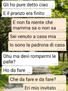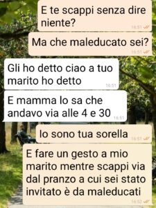 Io sono Letizia e questi screen che vi mando mi hanno forse aperto gli occhi su qualcosa che in realtà ho sempre saputo, ma a cui non volevo dare importanza sperando che… Ma dopo che mio fratello si è comportato come si è comportato, e mi ha detto quello che mi ha detto, e che trovate nei primi screen non posso che concordare con mia sorella. Con lei ho parlato subito dopo che Marco non mi ha risposto più (ha letto gli ultimi miei messaggi 2 giorni dopo e nemmeno una chiamata o una risposta). Anche mia sorella doveva essere a pranzo da me ma un malanno della suocera l’ha costretta a casa. E le sue considerazioni su nostro fratello mi hanno fatto malissimo. Ha ragione lei o posso sperare che le mie incazzature portino a qualcosa? Continuo o faccio come lei anche se mi piange il cuore?”
