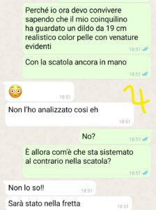 “Sono coinquilina di Gianmarco da un anno. Andava tutto bene: turni per le pulizie, Netflix condiviso, neanche una tazza rotta. Poi ieri è arrivato un pacco. Mio. Nome chiarissimo sopra. Eppure lui lo ha aperto. “Per sbaglio”, ha detto. Dentro c’era un dildo. Non uno piccolo da viaggio o rosa shocking da battesimo. No. Un dildo realistico, 19 cm, color pelle, venato. Scelto da me. Per me. E lui l’ha visto. Anzi, l’ha pure girato nel cartone. Come se fosse un soprammobile da Ikea. Quando gli ho scritto, ha detto che era solo curioso. Che non voleva mancare di rispetto. Ma il punto è che lo ha fatto. Mi ha tolto un pezzo di intimità. Un dettaglio mio, diventato oggetto del suo sguardo. E no, non è un dramma. Ma non è nemmeno una risata. È solo l’ennesima volta in cui una donna si trova a dover spiegare che “è una cosa mia” dovrebbe bastare.”