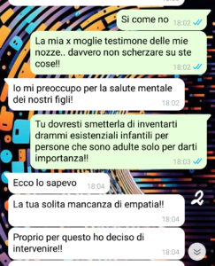 Negli ultimi tempi comunque la mia ex si è un po’ tranquillizzata, anche perché nel frattempo si è sistemata con uno che (poverino!) pare anche una brava persona.