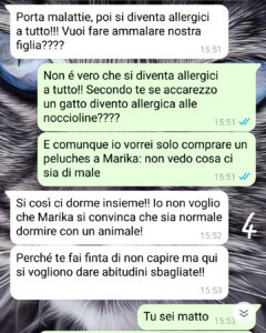 “Ciao SpunteBlu, sono davvero arrabbiata con il mio ex marito!! Mi presento mi chiamo Susi! Ho 31 anni e sono mamma di una splendida creatura che si chiama Marika: mia figlia è una bambina di quasi 5 anni (li compirà tra 3 mesi!) dolcissima e super intelligente che è la gioia della mia vita!! Dovete sapere che io sono cresciuta in una famiglia piena di amore e gioia e anche di tanta libertà e serenità: i miei genitori vivevano in campagna, in un posto un po’ isolato, così noi fratelli (io, mia sorella Sabrina e i miei due fratelli Simone e Stefano) passavamo le giornate a correre nei prati, divertirci e saltare nella natura circondati da cani, gatti e tanti altri animali! Vorrei tanto che anche mia figlia potesse avere un’infanzia così!! Purtroppo però Furio – così si chiama il mio ex – non apprezza affatto la natura e ha un terrore assoluto di ogni forma di vita che non sia umana.. Devo dire che tutte queste manie le ha sempre avute ma, di recente, sono peggiorate. Secondo Furio nostra figlia dovrebbe vivere chiusa in casa perché fuori ci sono malattie e pericoli.. e non parliamo degli animali: guai a cercare di far toccare a Marika un qualsiasi animale in sua presenza!! Per Furio i cani mordono, i gatti portano allergia.. L’altro giorno poi la sua mania ha raggiunto il culmine…”