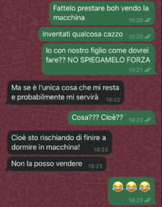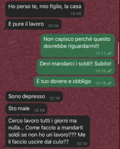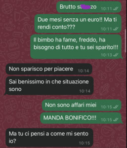 Sì, perché secondo lui io sarei quella fortunata perché ho un tetto, dato che la sua casa è rimasta a me… ma dove doveva andare suo figlio, per strada??