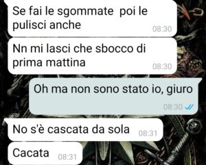 Lei si sveglia, e mi distrugge già dal primo messaggio. Dice che sono irresponsabile, che me ne frego e quindi, indovinate?, vuole darmi una lezione di vita.”