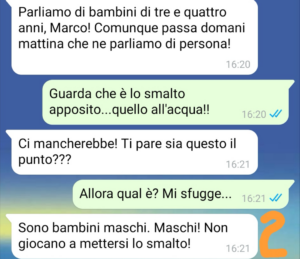 Purtroppo però mi sono ritrovato a scontrarmi con la mia direttrice per una ragione…e ora decido di mandare la chat al gruppo principalmente per porvi una domanda: ma secondo voi è giusto quello che è accaduto?