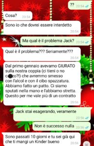 “Ciao Spunte Blu, vi scrivo perché in questa chat mi sono come sentita processata per qualcosa che, fino a due minuti prima, pensavo riguardasse solo una coppia normale, con le sue manie, le sue promesse un po’ ingenue, le sue contraddizioni. All’inizio sembrava tutto semplice. Un’idea condivisa, una decisione presa insieme, quasi per gioco ma anche con buone intenzioni. Gennaio, i buoni propositi, la voglia di “fare meglio”. Chi non ci è mai cascato? Poi, come spesso succede, le cose si complicano. Non per grandi tradimenti o segreti inconfessabili, ma per dettagli minuscoli che, a un certo punto, smettono di essere minuscoli. E quando una persona decide di trasformare quei dettagli in una prova, in un simbolo, in una bandiera morale, capisci che non stai più discutendo di quello che credevi. Il problema, però, sono i modi. Perché in una coppia dovrebbe esserci in primis amore e sostegno. Qui invece non ne ho visti. Purtroppo Giacomo si è lasciato molto andare nelle feste, e quindi gli sono prese queste fissazioni, ma stavolta ha superato ogni limite.”