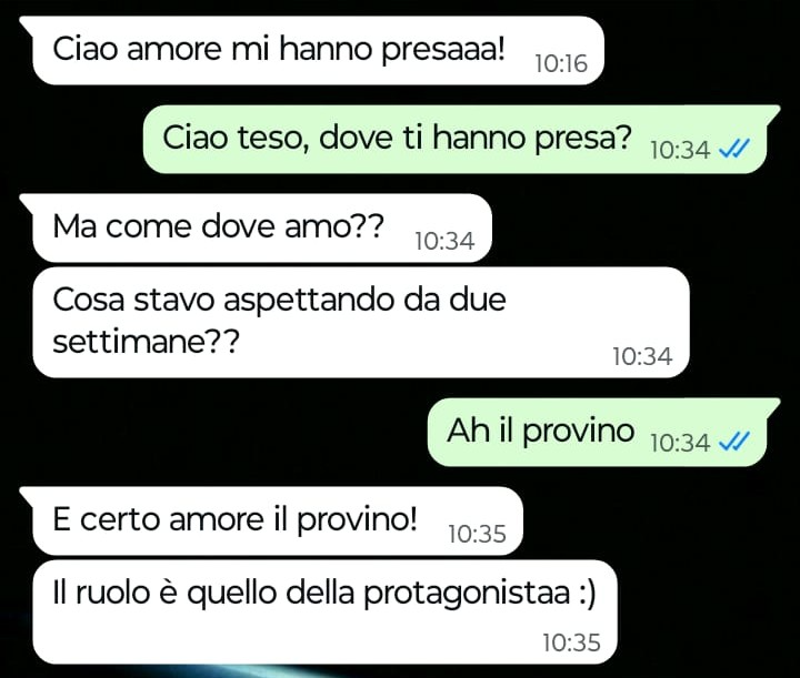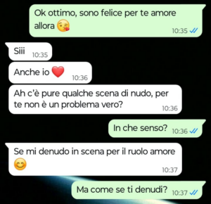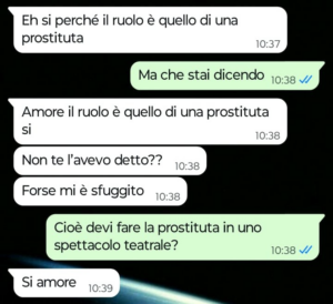 “Buongiorno Spunte Blu, due anni fa mi sono messo con una ragazza adorabile e carina. Non posso nascondere quanto io sia innamorato di questa ragazza anche perché conosco bene il suo passato, i suoi problemi e i vari blocchi che nel corso del tempo lei ha avuto. La mia ragazza sogna di fare l’attrice e dico sogna perché a mio parere lei non è un’attrice visto che non recita da parecchi anni ormai. Sì ha fatto teatro per tanti anni in passato certo, ma da allora sono appunto passati sei anni. Comunque oggi lei mi scrive per dirmi che l’hanno confermata ad un provino per uno spettacolo in cui dovrebbe fare la protagonista… e che protagonista aggiungerei io! Insomma leggete e capirete subito perché io non sono d’accordo che la mia ragazza riprenda la sua fantomatica carriera di “attrice”. Lei chiama questo spettacolo addirittura la sua occasione d’oro per sbloccarsi e riprendere a recitare, io invece questo spettacolo lo chiamo semplicemente con il suo vero nome: gran presa per i fondelli a gratis…”