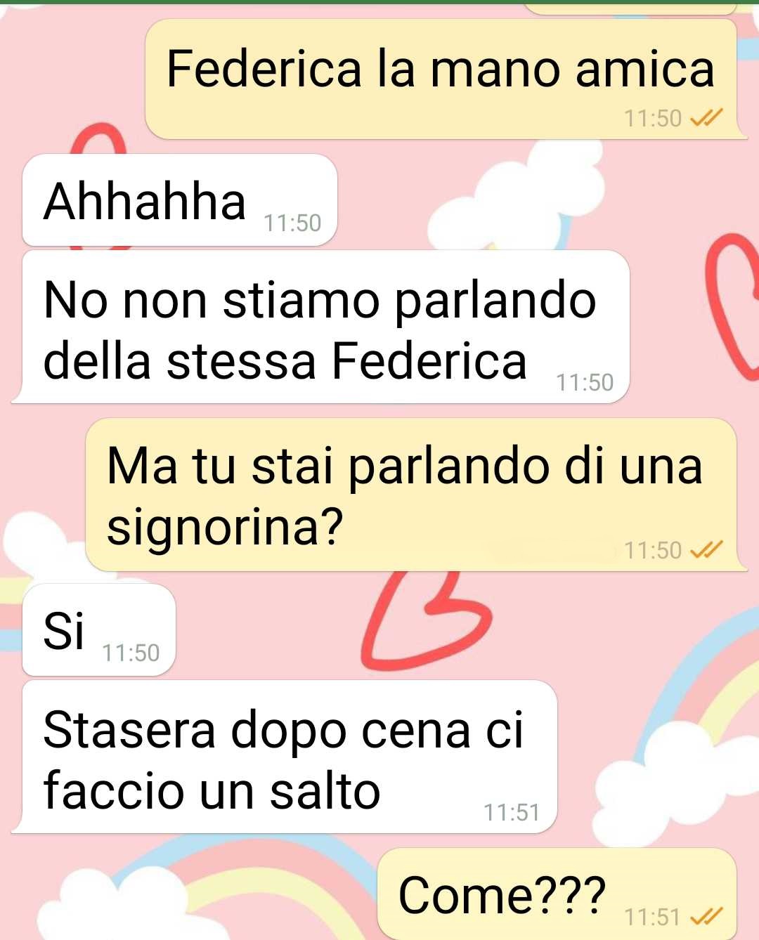 “Il mio ragazzo vuole andare a Federica. Ma non si riferisce alla mano amica. Io ci sono rimasta malissimo.