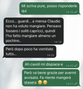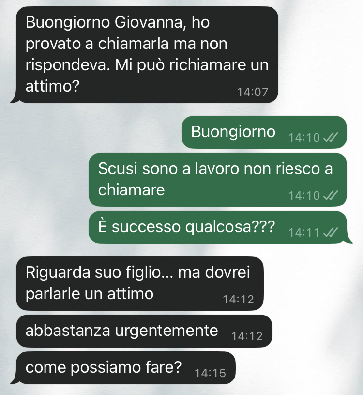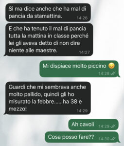 Vi lascio qui sotto la conversazione che ho avuto con la maestra su WhatsApp, così magari qualcuno può dirmi sinceramente se sono io quella che sta sbagliando o se davvero a volte la scuola dimentica completamente come funziona la vita reale delle persone!!”