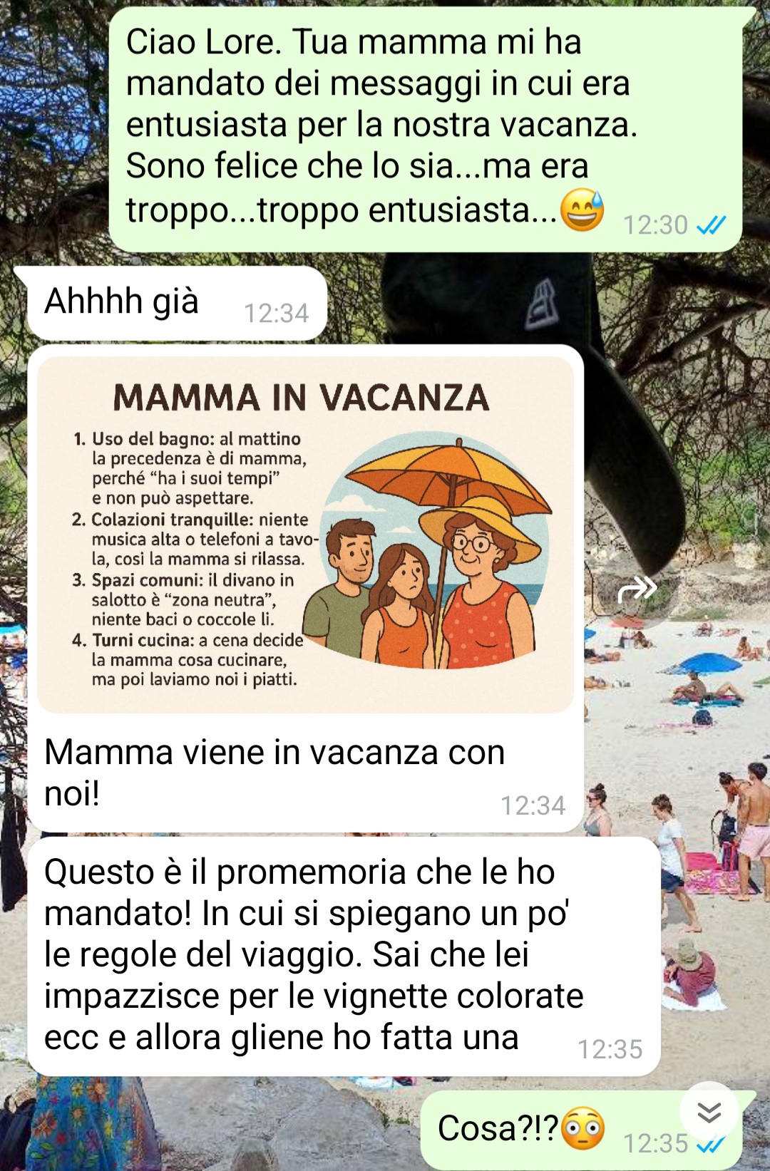 “Sapevo che qualcosa non andava. Lo sentivo nell’aria, in quel silenzio troppo lungo tra le nostre frasi, in quegli sguardi che si evitavano. Ma, in fondo, speravo di sbagliarmi. Questa vacanza… l’avevo sognata da mesi. Avevo contato i giorni, le ore, i minuti. Era il nostro momento, il nostro santuario, il posto dove ritrovare la magia che, ultimamente, sembrava essersi persa. Non che le cose tra noi andassero male, ma nemmeno bene. Era una sorta di limbo, un equilibrio precario che speravo si risolvesse con questo viaggio. Era tutto pronto: i biglietti, le valigie, l’itinerario. Volevo una di quelle vacanze che si vedono nei film, un’avventura a due, fatta di risate, scoperte e notti insonni. Avevo bisogno di ridere, di non pensare a nulla e di riconnetterci. Ma la vita, come al solito, ha i suoi piani. E i miei sono andati in fumo con una semplice frase: “Mamma viene con noi”. La mia mente non riesce a elaborare una cosa del genere. Forse è colpa mia, forse sono stata troppo ingenua o forse sbaglio a farmi così tanti problemi. Una cosa è certa: da quando suo padre non c’è più, il rapporto è cambiato. Non parlo del nostro rapporto, ma del suo con la madre. C’è un filo invisibile, una sorta di cordone ombelicale che si sta riannodando e che mi sta lasciando fuori. E ora, a pochi giorni dalla partenza, sono rimasta senza parole.”