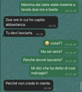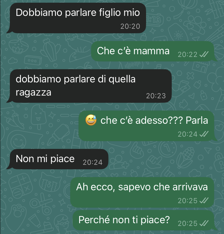 Così ho deciso di farla conoscere a mia madre, pensando che sarebbe andato tutto bene, invece è stato un disastro totale. Da quel giorno mia madre non la sopporta, dice che non è adatta a me e che dovrei lasciarla, ma il motivo mi sembra completamente assurdo. È come se avesse deciso di odiarla a prescindere, solo per una cosa che ha detto, una cosa che secondo me non la definisce affatto come persona.