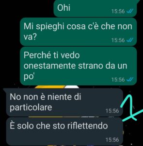 Poi all’improvviso ha iniziato a usare frasi più rigide, giudizi tirati fuori dal nulla, commenti che non c’entravano niente con il ragazzo che conoscevo, ma ovvimente poi scopro tutto e vi posso garantire che ci sono rimasta davvero malissimo. Eccovi la chat di cio che è accaduto e per me sono stata fin troppo gentile.”