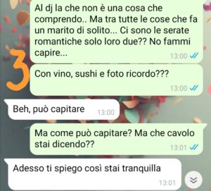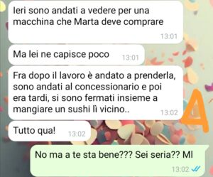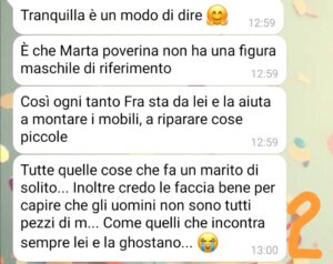 Dicevo che guardo lo stato di Marta e devo andare a mettermi gli occhiali perché quello che sta con lei in quella che sembra essere una cenetta romantica…non può essere Francesco. Il Francesco di mia figlia!