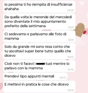 Spero che i suoi auguri possano strapparvi un sorriso… perché a me hanno riempito il cuore di gioia e di orgoglio! Sono fiera di poter chiamare quest’incredibile ragazza MIA figlia.”