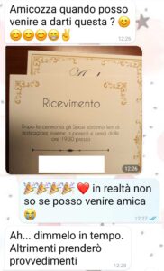 “Una mia amica si sposa. MI ha detto che se non ci vado mi farà pagare una penale. Ma si può???