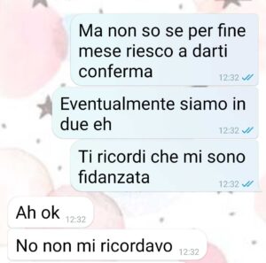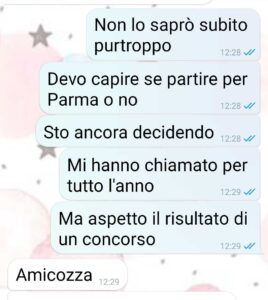 Mi ha detto che se non ci vado farà una cosa assurda per avere i soldi che le devo. Con ste premesse che devo fare? Io purtroppo ho delle incertezze, e non lo faccio perché sono stronza o non me ne frega niente ma perché devo sapere ancora delle cose. Non ci posso fare niente. Ma secondo voi mi sta trattando bene?? Queste cose sono possibili?? A me sembra una grande cavolata che questa sottospecie di amica mi ha detto per farmi spaventare. Ma che amiche ho?? ;(”