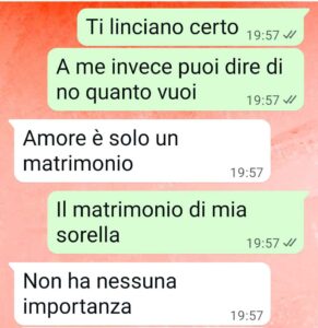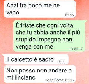Io sono sempre la seconda scelta. Vengo dopo una lista infinita di hobby e impegni del mio ragazzo. Se è libero, viene. Se non ha altri impegni allora c’è. Ma io dico, una partita di calcetto ha la stessa importanza di un matrimonio di un familiare??
