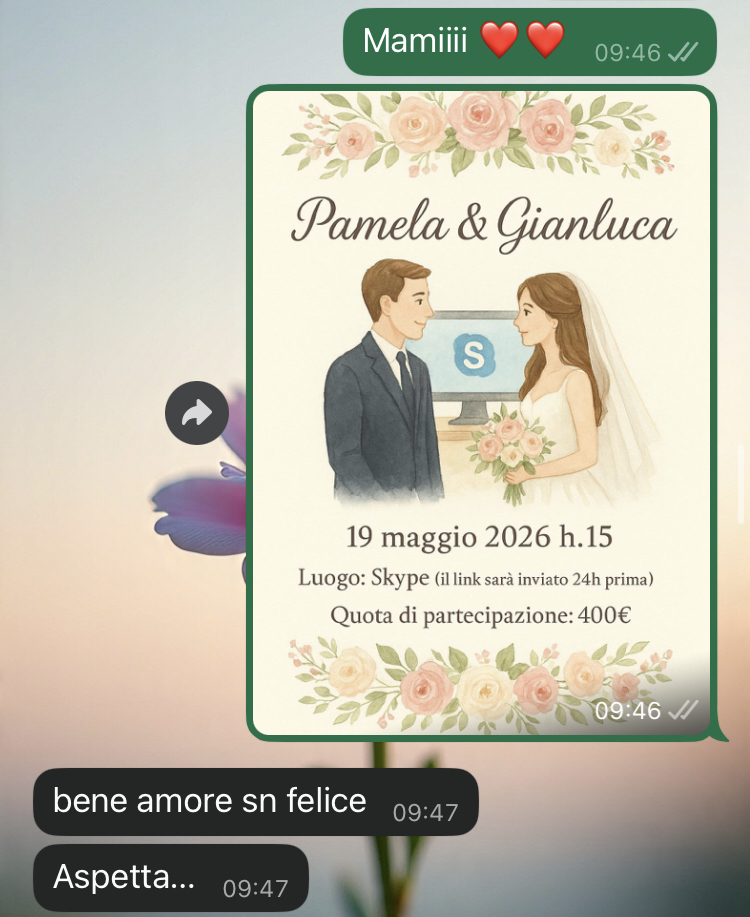 “Ciao a tutti/e… vi leggo tutte le sere. Oggi vi scrivo io perché sono veramente senza parole. Sto per sposarmi e invece di ricevere entusiasmo e un minimo di supporto, mi trovo circondata solo da lamentele. Ma vi sembra normale? Nessuno, e dico nessuno, pare contento per me. Tutti con la faccia storta, tutti pronti a fare tragedie greche per ogni dettaglio. Ma vi sembra normale? Io penso di no, ma a quanto pare intorno a me vivono ancora nell’Ottocento.