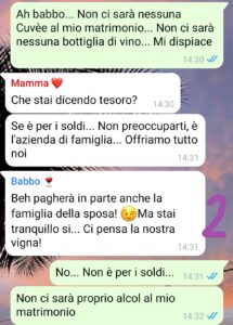Purtroppo però, nonostante la gioia di mio padre, devo comunicargli che al mio matrimonio non potremo stappare quelle bottiglie. Nè altre della nostra azienda. Di nessuna azienda.