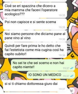 “Ciao SpunteBlu, mi chiamo Vanessa e sono un medico. La mia specializzazione è un po’ particolare: sono un medico estetico, ossia mi occupo di medicina estetica.. diciamo che è qualcosa di simile alla chirurgia estetica ma senza bisturi! Quindi io faccio peeling chimici, correggo piccole imperfezioni legate all’invecchiamento come le rughe, faccio trattamenti laser e botox e molto altro. Per quanto la mia professioni riguardi l’estetica e non, diciamo, la vita della persone io sono un medico a tutti gli effetti: sono laureata in medicina e ho fatto la specializzazione. Ho studiato molto. Ora da alcuni mesi sto con un ragazzo, Domenico, che è davvero molto ma molto bello ma purtroppo non è proprio una cima: pensate che non ha minimamente capito che lavoro faccio!!! Ebbene anche se il mio lavoro mette in primo piano la bellezza, mi sono resa conto conto che la bellezza non è tutto e davvero non può bastare a farmi sopportare un uomo che ha il quoziente intellettivo di una sedia! Leggete quale è stata la goccia che ha fatto traboccare il vaso…”