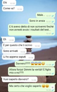 “Nel giro di pochi secondi la mia vita era stata completamente stravolta e purtroppo in maniera molto negativa. Un attimo prima ero un giovane spensierato, che si gode i piccoli piaceri della vita, va alle feste di amici di amici vivendo alla giornata e guardando sempre il lato positivo delle cose, un attimo dopo ero un giovane pieno di ansie e preoccupazioni, che forse stava per diventare padre di un figlio concepito in un solo incontro con una ragazza che potrebbe essere la mia sorellastra. E in tutto questo mio papà non mi aveva mai neanche detto nulla e avevo scoperto tutto da lei. Ancora non ci credo al solo pensiero. Detto questo, l’ansia mi stava divorando. Con Alice ci siamo rivisti solo per fare il test (abbiamo dovuto aspettare un pochino di tempo per essere sicuri di farlo attendibile) e un’altra volta per parlare di futuro, ma con visioni totalmente diverse. Ero in ansia perché dovevo avere quella risposta. Da quella risposta sarebbe dipeso lo sviluppo di tutta la mia vita per probabilmente i successivi 20 anni e forse più. L’ansia mi stava davvero divorando dentro. Poi, all’improvviso, la risposta è arrivata e ho dovuto fare i conti con essa.”