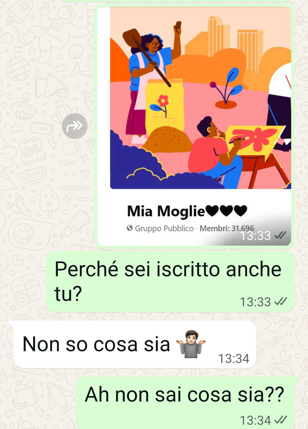 Per me è una cosa disgustosa che mio marito ne faccia parte. Ma mi chiedo cosa ci facesse in quel gruppo. Guardava sbavando??? O peggio postava foto mie???