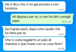 Leggi le ultime storie Mio padre Il gene condiviso Il segreto notturno La saponetta Il mammone La palestra La fidanzata ideale Non è mio – Parte finale Regalo riciclato male Il numero magico Veggy style Vegano dalla nascita Risarcimento traumi Mi ameresti se..? Tatuaggio d’amore Uno strano appuntamento di lavoro Il matrimonio di mia sorella Suocera Angela Federico e Angela La passeggiata