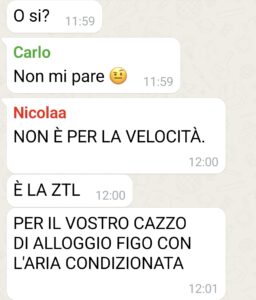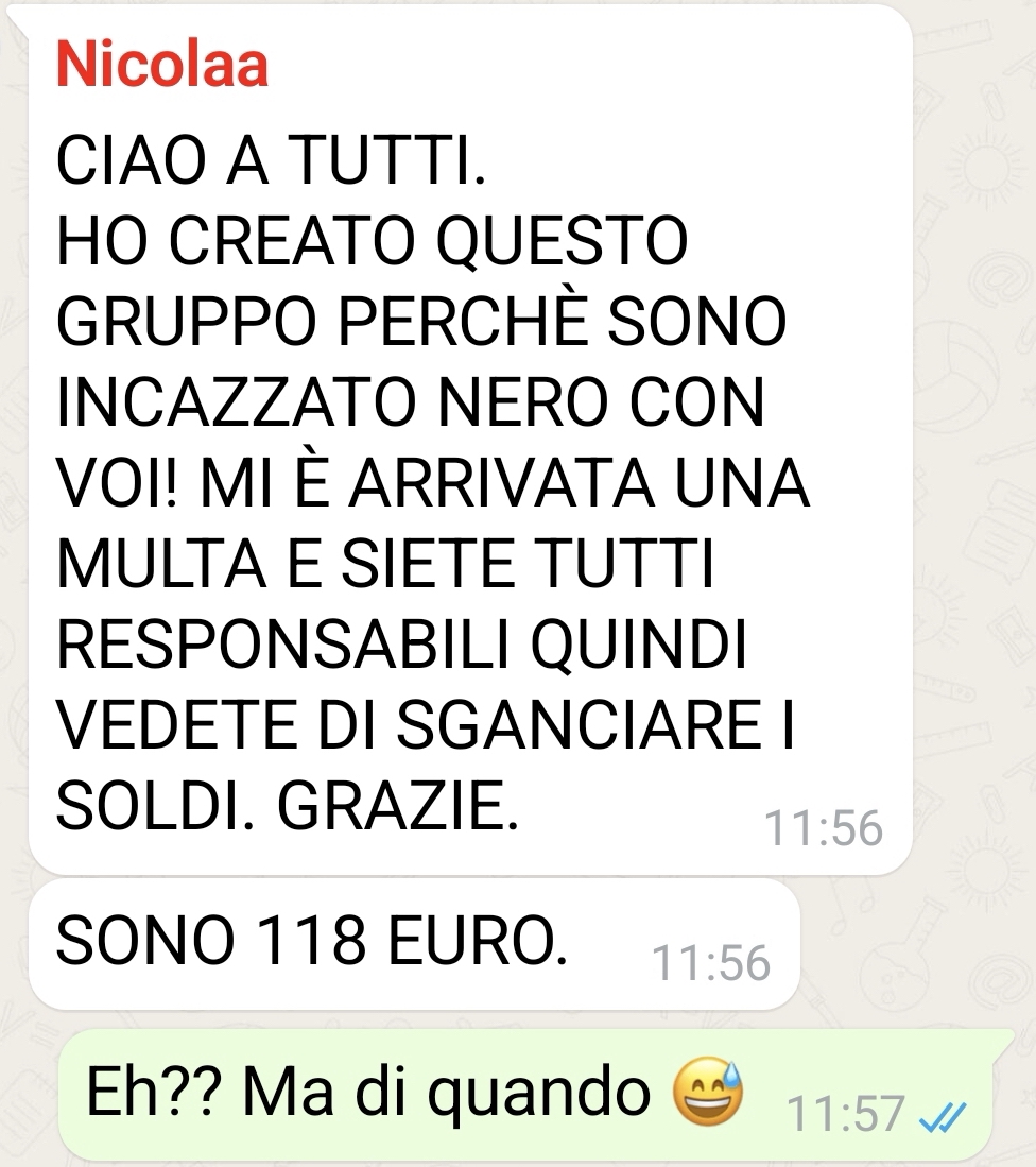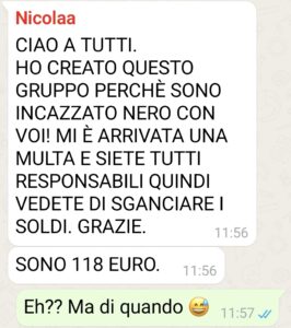 Invece la barzelletta ce l’ha raccontata Nicola con le sue pretese, i suoi messaggi urlanti e i gruppi creati per qualsiasi cosa.