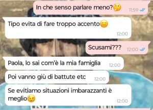 “Mi chiamo Paola, ho ventisei anni e sono nata e cresciuta a Napoli. E no, non è solo un dettaglio geografico: è casa, è voce, è famiglia rumorosa la domenica, è parole che escono di pancia prima ancora che dalla testa. Quando mi sono trasferita al nord per lavoro, sapevo che qualcuno avrebbe avuto qualcosa da dire. Non mi ha mai spaventato. Mi spaventava di più l’idea di smettere di essere me stessa. Con Gabriele sto insieme da quasi un anno. Lui è diverso da me: più misurato, più silenzioso.. All’inizio le nostre differenze mi sembravano un equilibrio perfetto. Io fuoco, lui acqua. Io istinto, lui controllo. Pensavo fosse questo l’amore: incontrarsi a metà strada. Stasera c’è la festa di suo fratello. Ci saranno tutti: genitori, zii, amici eccetera. E io, anche se non lo do a vedere, sono agitata. Non per quello che potrebbero pensare di me. Ma per quello che lui potrebbe non dire. Perché quando ami qualcuno, vuoi sentirti scelta. Difesa. Riconosciuta. La nostra chat doveva essere solo organizzativa: orario, regalo, come vestirsi. Invece si è trasformata in qualcosa che non avevo previsto. E a volte basta una frase per capire se la persona accanto a te è pronta a tenerti per mano… o a chiederti di abbassare la voce”
