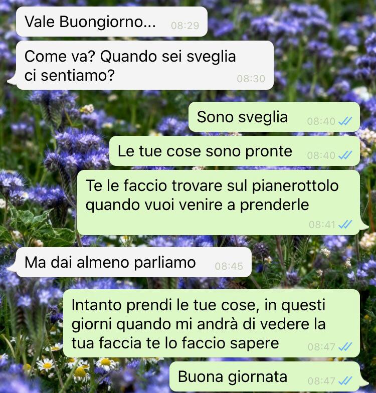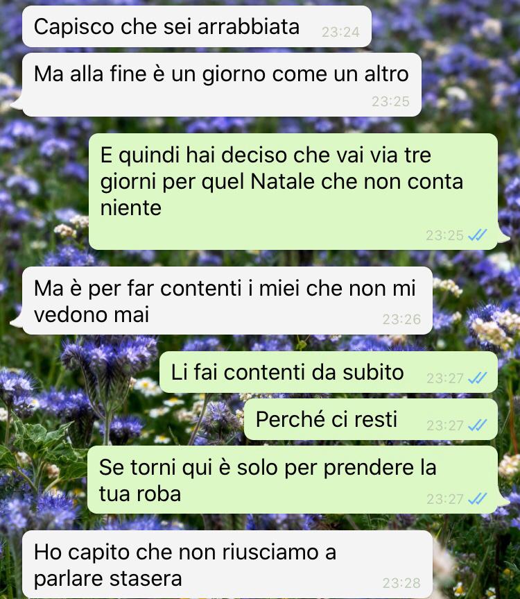“Poco dopo mi chiama al telefono, parliamo poco e discutiamo molto. Non ne viene fuori nulla, se non una me sempre più incazzata”