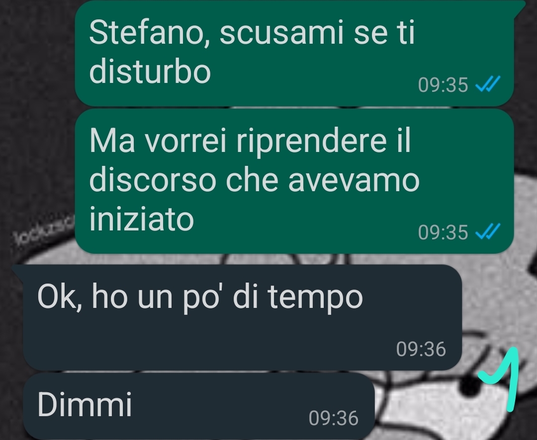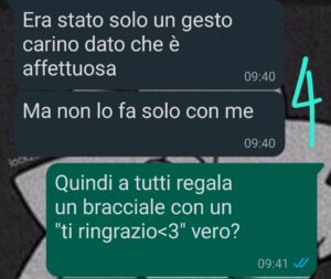 “Come fanno le persone ad accettare sotto la scusa della “libertà” di tutto e di piu? Perchè quando Stefano ha iniziato a uscire dieci minuti prima “per un caffè” o quando, ridendo, mi fa: “Mi vedo con Alessia, facciamo colazione insieme prima di andare in ufficio”, come se fosse normale, io ci stavo male ma non ho detto niente. Poi però è arrivato di tutto e di più mentre io osservavo e basta, fin quando non sono esplosa perchè per me era davvero troppo. Ma voglio capire se sono io gelosa… o lui che ha completamente perso il senso dei limiti!”