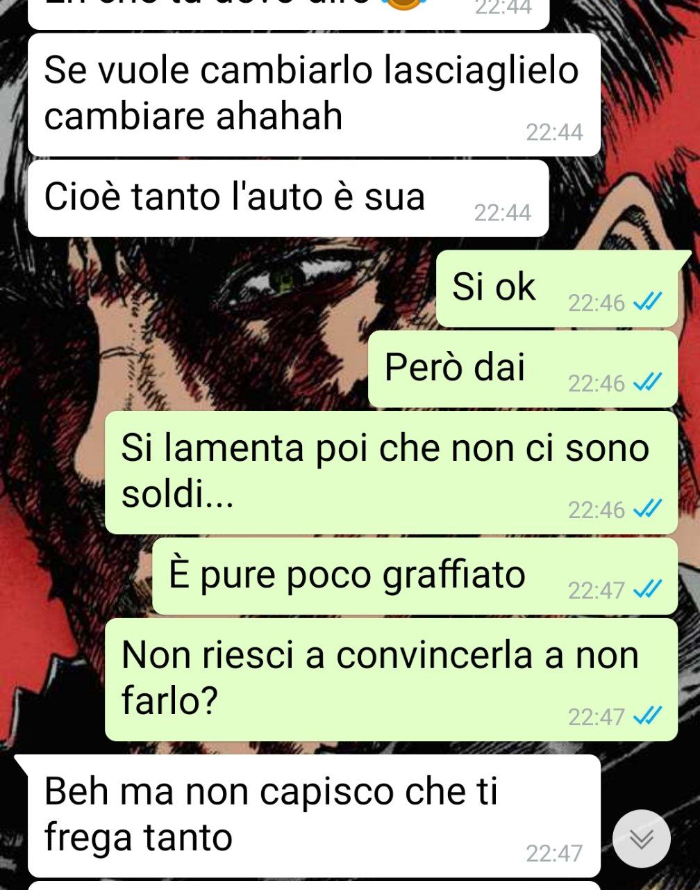 Fin qui penso che nemmeno nessuno di voi si sia ponga il problema. E non me lo sarei posto nemmeno io. I problemi risalgano al fatto che qualche anno fa, sia successo qualcosa in particolare, qualcosa che mi avrebbe spinto a non volere che lei riparasse il paraurti.