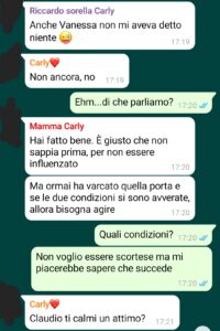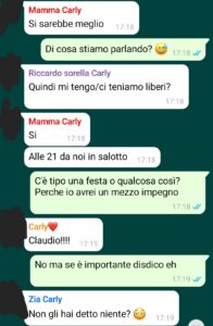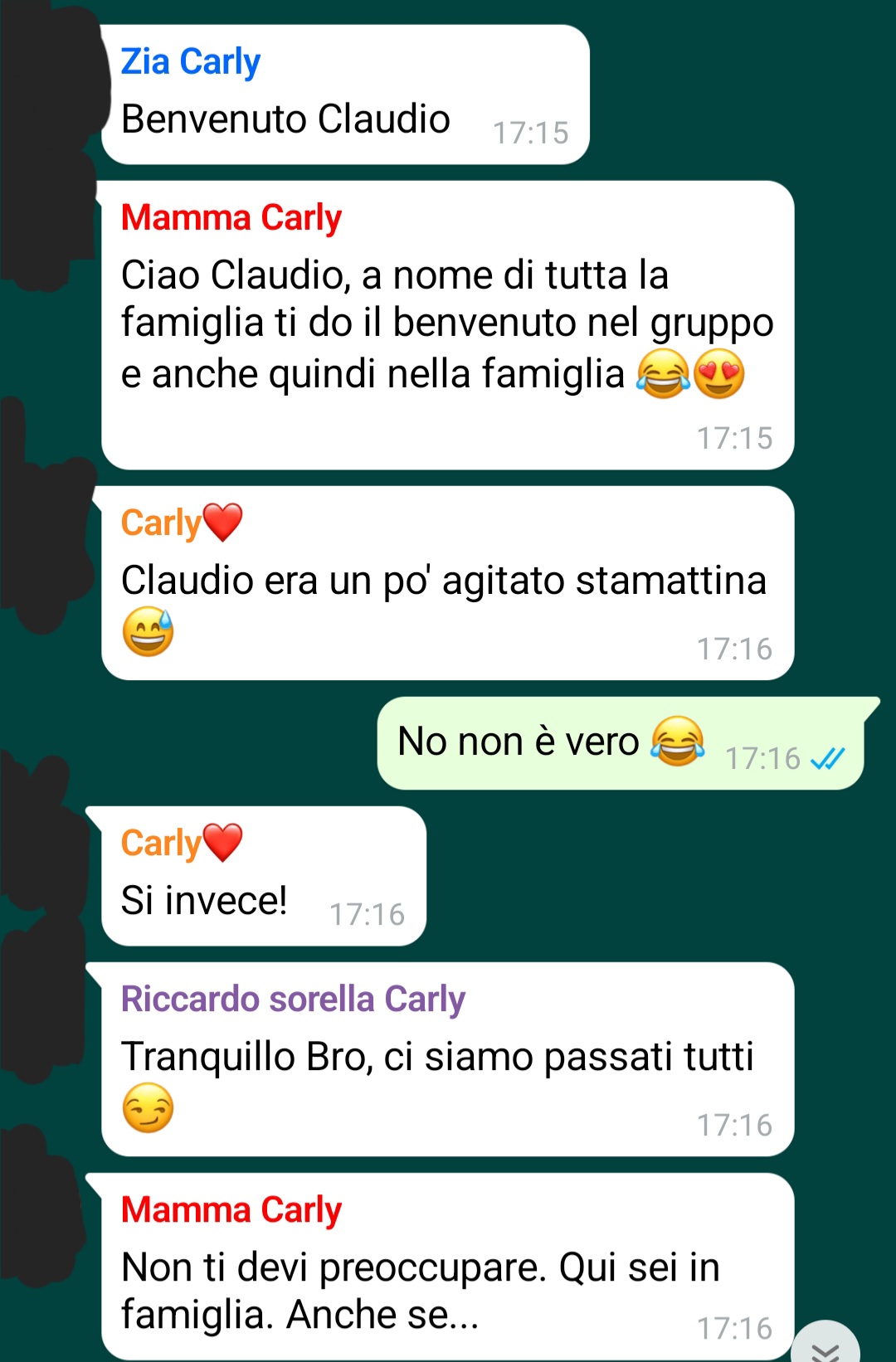 “Non so come mi sono ritrovato in questa situazione ai limiti di un film horror. Perché oh, è così. Alcuni mi hanno detto “ma che sarà mai dai, c’è di peggio”. Non c’è dubbio che ci sia di peggio, ci mancherebbe, ma tutto quello che mi è successo non è normale e che sostiene il contrario (e sono tanti ahimè) non ha tutte le rotelle che gli funzionano. Comunque, circa quattro mesi fa conosco questa Carlotta. Prima la conoscevo solo di vista, bellissima, perché veramente bellissima, ma tutti dicevano fosse un po’ strana. Personalmente sono attirato dalle persone particolari e comunque, a mio parere, uscendoci un po’, tutto mi sembrava tranne che strana. Molto molto legata alla famiglia, ma strana no. Infatti, proprio in tema famiglia, dopo questi quattro mesi insieme, di cui due in cui eravamo una coppia a tutti gli effetti, lei mi dice che avrebbe estremo piacere che io entrassi nel loro gruppo WhatsApp di famiglia (avevo già conosciuto tutti, sua mamma, sua zia, sua sorella con il fidanzato, però volevano che entrassi). Un po’ presto forse? Mah, neanche troppo. E quindi lo faccio…non l’avessi mai fatto…”
