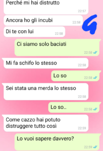 Ci siamo conosciuti a scuola, avevamo solo 15 anni e tantissimi sogni. Siamo cresciuti insieme superando sempre tutte le difficoltà e i periodi difficili delle nostre vite..non ci siamo mai lasciati…fino a un anno fa. È stato lui ad andarsene e lo ha fatto perché io ho fatto qualcosa che per lui è stato imperdonabile…questa cosa ha un nome e si chiama Alessio.”