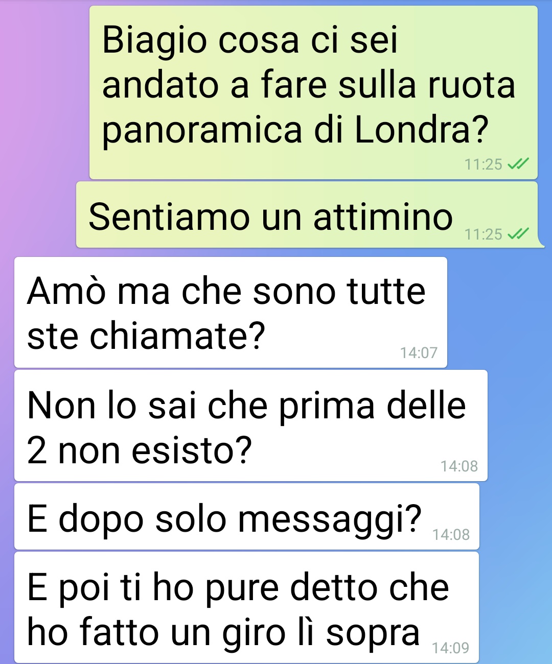 Le prime volte sono andata con lui, il primo anno insieme. Ma da 4 anni ho smesso, che fa tipo 12 ore al giorno di lavoro e silenzio radio in quei giorni. Così anche stavolta penso si sta rompendo il c**o come sempre, a Londra. Ma stamattna mi arriva un suggerimento di amicizia. E questa in foto è abbracciata a lui!!