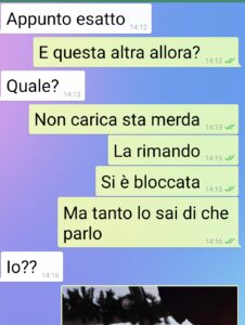 Io non credo alle sue str***ate! Può continuare all’infinito a chiamarmi e scrivermi a dire che non è come sembra.”