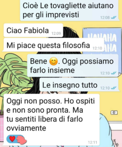 “Io e la mamma del mio ragazzo abbiamo avuto le mestruazioni lo stesso giorno. Io però le gestisco col free bleeding a casa, lei con assorbenti e tamponi. Ci siamo scontrate su questo punto. ero invitata a casa sua e avevo paura di sporcare le sedie. A casa mia ho tutto l’occorrente e in genere non sporco niente se non delle mutandine e dei vestiti di casa e le mie tovagliette che uso solo se mi siedo. Ma a casa di persone estranee insieme ad altri invitati avevo il timore di fare una figuraccia e non me la sentivo di indossare le catene assorbenti, quei pannoloni che mi irritano tantissimo e che mi fanno sentire sbagliata. Non sono incontinente, non sono malata. Ho solo le mie mestruazioni, una roba che mi capita una volta al mese e che avrò per altri due/tre decenni (tipo mutuo). Non mi sembra poco. La mamma del mio ragazzo invece è agli sgoccioli, e mai espressione è stata più appropriata. È ai suoi ultimi cicli, perché è in premenopausa.