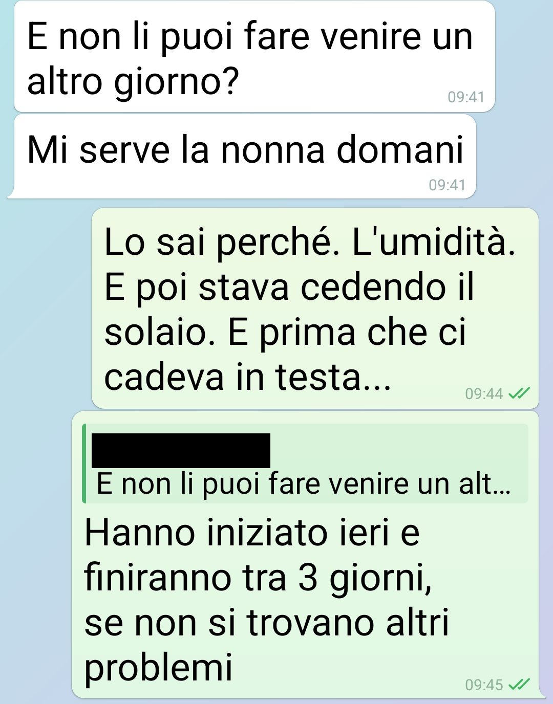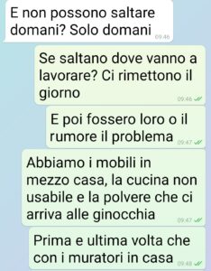 Sono una mamma e una nonna e ho i muratori in casa da ieri, per una serie di problemi da risolvere e che non potevano più essere ignorati. Perché è importante? Perché senza questa condizione eccezionale non sarebbe venuta fuori la mentalità di mia figlia (e/o forse pure del compagno chissà) circa la considerazione che ha di me. E forse era meglio rimanere nell’ignoranza. Perché mi sento amareggiata come non mai. Mio marito dice di lasciare perdere, ma a me rode troppo. Lo devo dire a qualcuno (meglio voi che siete estranei). Sono stata troppo colpita e affondata. I due piccioncini hanno prenotato la giornata spa, e la nonna si tiene il pupo, come sempre. Ma stavolta non posso farlo a casa mia, non ci sono le condizioni igieniche per il bambino. Ho comunque dato una alternativa, la più ovvia e facile ma… sorpresa! A lei non sta bene. Alleva figli…”