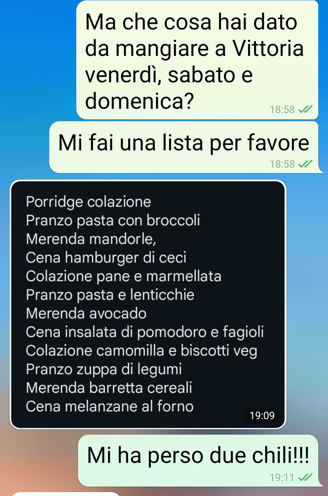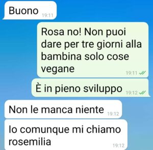 “Mia suocera è vegana e mi sta facendo impazzire ha dato a mia figlia per un intero weekend solo cose vegana e le ha fatto perdere 2 kg!!