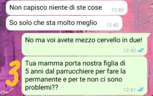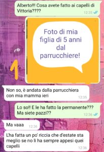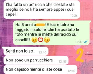 Però ero felicissima di sapere che ci sarebbe stata anche la nonna, che poi è lei a guardarla quando sta con il padre. Sì…felice fino a quando non ho visto una foto postata sul suo Instagram di mia figlia in un salone da parrucchiere…