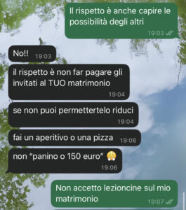 Leggi le ultime storie Opzioni al matrimonio Evoluzione di un matrimonio Marta e Stefano Il doppio fidanzato I piatti della colazione Il papà della sposa Il tavolo per la casa nuova Il mio Ken La proposta di matrimonio sbagliata La sua decisione Ti prego mentimi Rotoli e tradimenti Cose personali Il completino Lo snack della discordia Billo il gallo L’educazione alimentare L’andrologo e il cacciatore Piatto con sorpresa Non ti amo più
