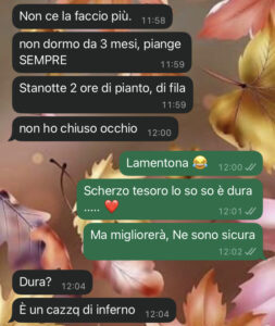 Io cerco di starle vicino come posso, di ascoltarla e di non giudicarla, perché capisco che la maternità non sia una passeggiata e ognuna la vive in modo diverso. L’ho anche aiutata una volta tenendo il piccolo un paio di ore. Però l’altro giorno mi ha scritto e vi giuro che questa volta mi ha spiazzata. Mi ha scritto tutta una serie di messaggi e a un certo punto mi ha fatto una proposta talmente assurda che sono rimasta senza parole. Non so come interpretare questa cosa. Mi fa gola, ma credo che sia assurdo. È una madre degenere!