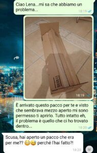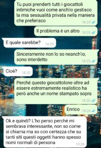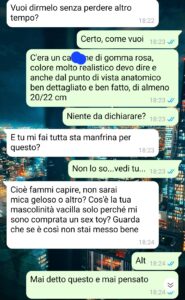 “Lungi da me essere considerato un ragazzo geloso. Mai stato, anzi, tutto il contrario. Personalmente sono profondamente contrario a tutto ciò che, all’interno di una coppia, possa limitare la libertà personale. Ovviamente nei limiti dell’accettabile. Non bisogna infatti confondere la gelosia con il buon senso, e la libertà di fare ciò che si ritiene giusto con la libertà, che non dovrebbe esistere, di mancare di rispetto al partner. La mia relazione con Lena è sicuramente ottima e non abbiamo mai avuto problemi da questi punti di vista, pur avendo lei un ex fidanzato abbastanza invadente che ogni tanto salta fuori per provare a reinserirsi nella sua vita. In ogni caso, stava andando tutto bene, sia nella vita di tutti i giorni, sia sotto le lenzuola, e ci tengo a sottolinearlo perché può essere utile per la lettura. Un giorno, però, arriva un pacco molto sospetto a casa, sia per forma che per dimensione. Dato che la scatola era leggermente danneggiata, lo apro, anche se era a nome di Lena. Non l’avessi mai fatto, quello che ci ho trovato dentro mi ha sconvolto e le ho scritto subito.”