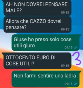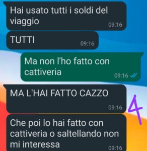 Il punto è che stavamo mettendo da parte soldi per andare a trovarli. Un weekend lungo. E io… non ce la facevo. Mi saliva l’ansia solo a pensarci. Dopo quello che ho fatto, pensa che io sia una pazza. La verità? Che ho bisogno di aiuto e fargli capire che non riesco a comunicare con lui e che a volte possiamo avere bisogno di essere capiti anche se facciamo una cavolata.”
