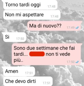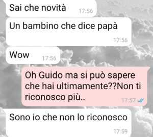 Era da un po’ di tempo che Guido era strano, all’inizio pensavo fosse uno sfogo passeggero, un momento di stanchezza o stress. Ma quello che è venuto dopo, le sue parole in questi messaggi mi hanno gelato il sangue.