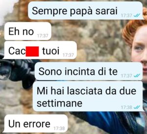 Il bambino lo abbiamo fatto insieme no?? Che poi mi ha lasciata lui, mi ha pure tradita, si è messo con una persona che gli ho fatto conoscere io. Insomma è una mer** di persona, una persona inutite davvero. ma questa no, questa non la può passare liscia come se nulla fosse.
