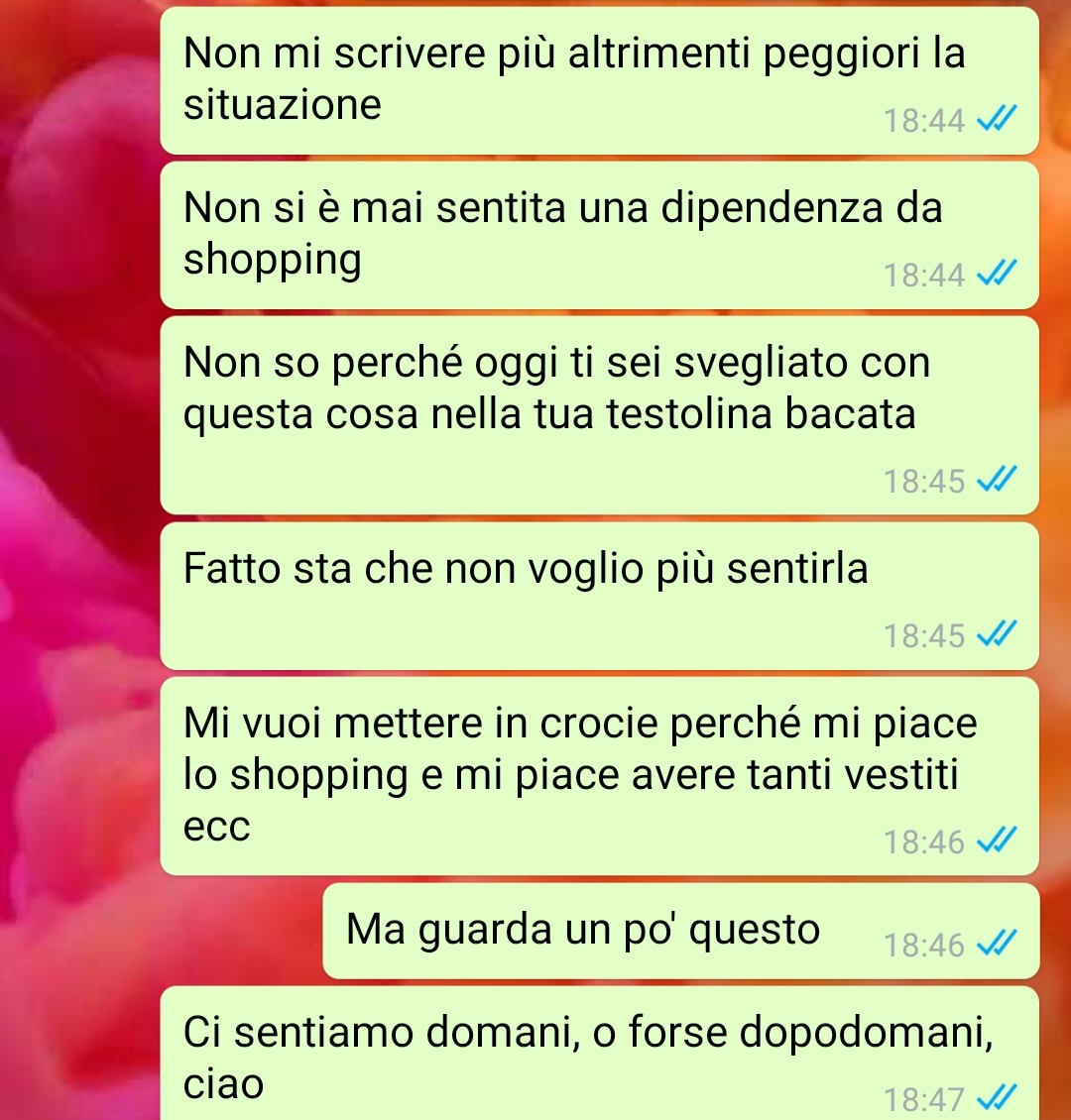 Leggi le ultime storie La quota scoperta Senza fronzoli Troppo sincero Il regalo di Pasqua Tassa di fine relazione La candelina in più Lorenzo Il ristoratore La richiesta di papà I gioielli di famiglia Non incrociare i flussi – Parte finale Non detti Problemi con la wedding planner Il bollitore Mia mamma è ovunque Rimborso post matrimonio Un trasloco Lo scandalo Non incrociare i flussi Il weekend del compleanno