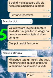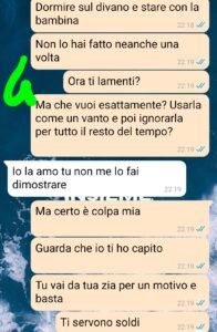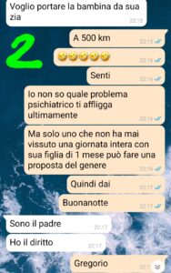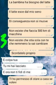 “Gregorio e io non ci siamo sentiti per settimane. Lui è venuto a vedere la bambina dopo 15 giorni che era nata, ma io non ho voluto neanche vederlo. Ci ha pensato mia suocera. Lui è venuto a casa, è rimasto 20 minuti ed è andato via. Poi mi ha chiesto di parlare, mi ha detto che voleva rimediare e io gli ho risposto che tra noi era finita ma che se voleva, poteva restare a casa per fare il padre, soprattutto in questo primo periodo di vita della bimba, per poi decidere più in là cosa fare. Ovviamente per me è stato uno sforzo enorme anche solo il fatto di dirgli che potevamo condividere la stessa casa. Lui, però, ha rifiutato. Non gli è andato giù il fatto che io lo avessi lasciato ed è andato via. È tornato un paio di volte per vedere la bambina e basta. Poi, ora che la bimba ha poco più di un mese, l’altra sera mi ha mandato un messaggio assurdo. Io vi giuro che quando l’ho conosciuto non avrei mai immaginato che sarebbe andato fuori di testa fino a questo punto…”