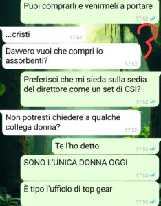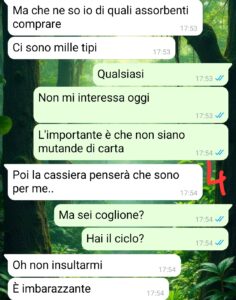 “Quando ti arriva il ciclo, sei già sfinita di tuo. Ma se ti capita mentre sei l’unica donna in un ufficio pieno di maschi alfa con la sindrome da open space, e con una riunione imminente col capo più rigido del globo… be’, lì serve un miracolo. O un fidanzato. Io ho optato per la seconda, ma mi è andata peggio. A Stefano ho chiesto solo una cosa: compri un pacco al volo? Niente di eroico. E invece è riuscito a trasformare una richiesta normale in una questione di principio maschilista, imbarazzato come se gli avessi chiesto di acquistare plutonio. La chat che ne è venuta fuori è una delle cose più assurde, umilianti e, col senno di poi, anche comiche che mi siano capitate. Ma mentre io cercavo di tamponare con la carta igienica la mia dignità, lui si preoccupava che pensassero fossero per lui. Avete presente quando vi dicono “un giorno riderai di questa cosa”? Ecco. Quel giorno non è ancora arrivato. Buona lettura.”