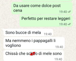 “Ciao Spunte. Mi dite che c’è di male a portare petali di mele come dolce di fine pasto a casa dei genitori del mio ragazzo???