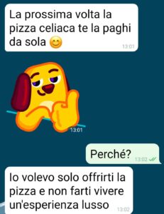 Io ci rido adesso, ma vi assicuro che sul momento ci sono rimasta abbastanza male. Ero contenta perché finalmente, dopo settimane di messaggi, ero uscita con questo ragazzo. Primo appuntamento, classica pizzeria, niente di complicato. Lui era sembrato gentile, ha insistito per offrire e io ho accettato, convinta che fosse un gesto carino e disinteressato. Ci siamo divertiti, la serata era andata bene, almeno così credevo. L’unico “dettaglio”, se così vogliamo chiamarlo, è che io prendo sempre la pizza senza glutine, per un problema che ho da tempo. Non è una mia fissazione, non è un capriccio, semplicemente non posso mangiare quella normale. La pizza senza glutine costava quattro euro in più, come succede ovunque, e non ci ho dato peso: pensavo fosse una cosa talmente irrilevante che nemmeno valesse la pena parlarne.